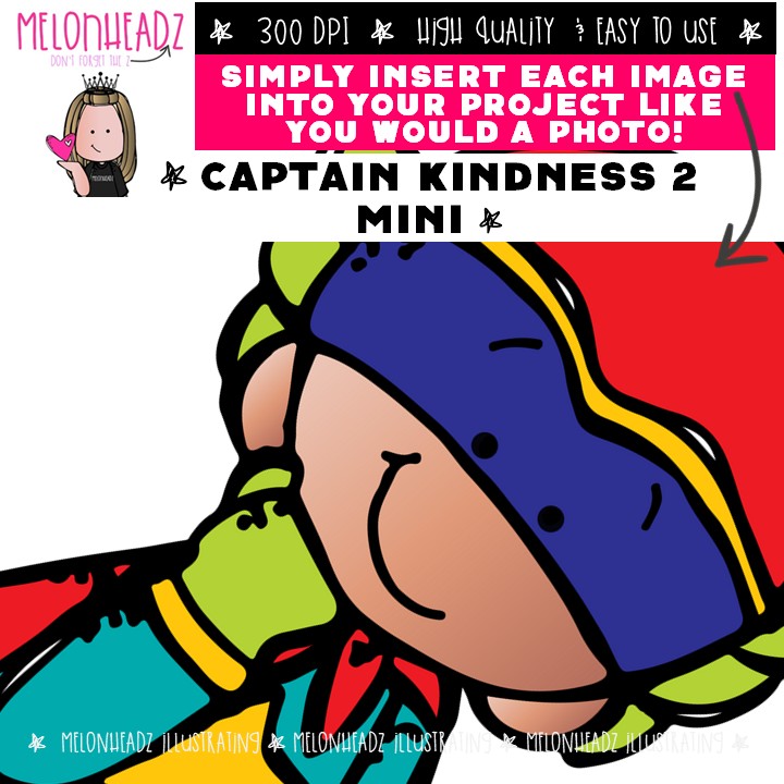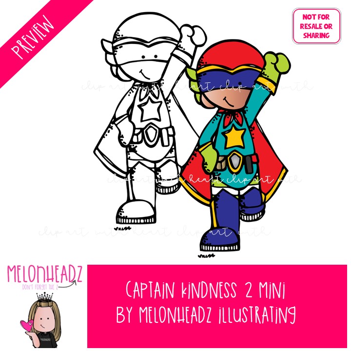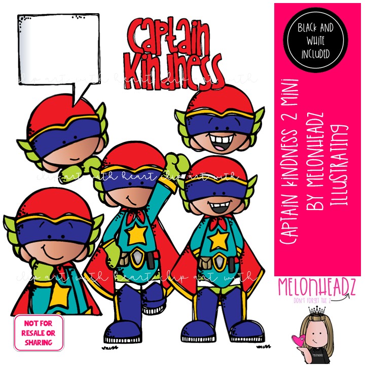 Captain Kindness clip art, superhero Mini: This illustrated set contains all of the clip art images as shown in the preview picture. COLORED and BLACK AND WHITE illustrations included.