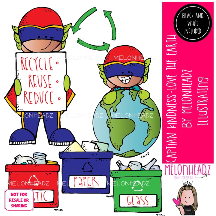 Captain Kindness clip art Love the Earth clip art Earth Day clip art Mini: