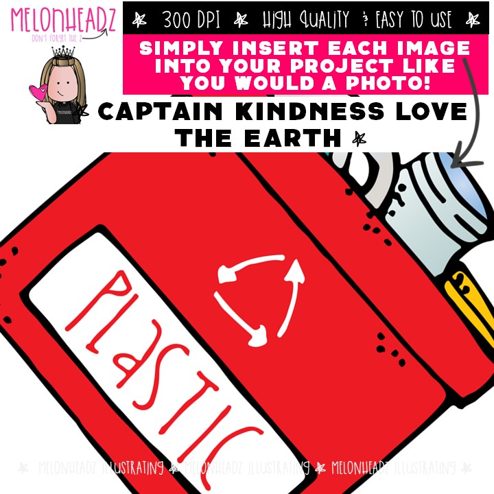 Captain Kindness clip art, Love the earth, Earth Day, superhero Mini: This illustrated set contains all of the clip art images as shown in the preview picture. COLORED and BLACK AND WHITE illustrations included.