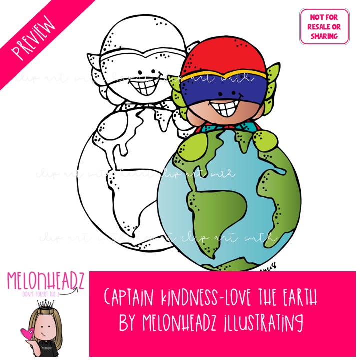 Captain Kindness clip art Love the Earth clip art Earth Day clip art Mini