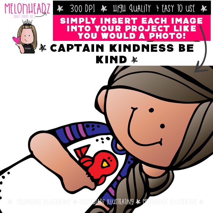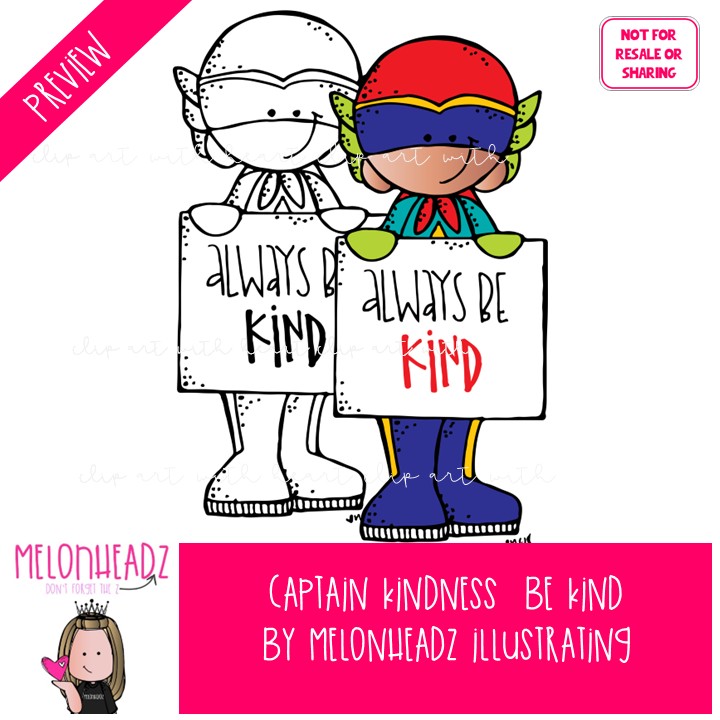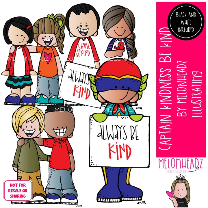 Captain Kindness clip art, Be Kind, superhero Mini: This illustrated set contains all of the clip art images as shown in the preview picture. COLORED and BLACK AND WHITE illustrations included.