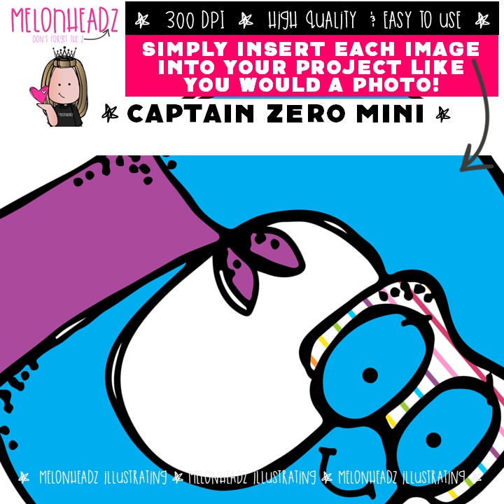 Captain Zero clip art, Math, Superhero Mini: This illustrated set contains all of the clip art images as shown in the preview picture. COLORED and BLACK AND WHITE illustrations included.