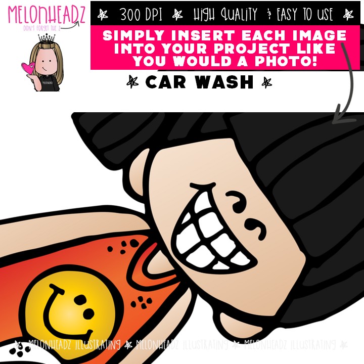Car Wash clip art, Fundraiser, Van COLORED Version: This illustrated set contains all of the clip art images as shown in the preview picture. COLORED illustrations included.