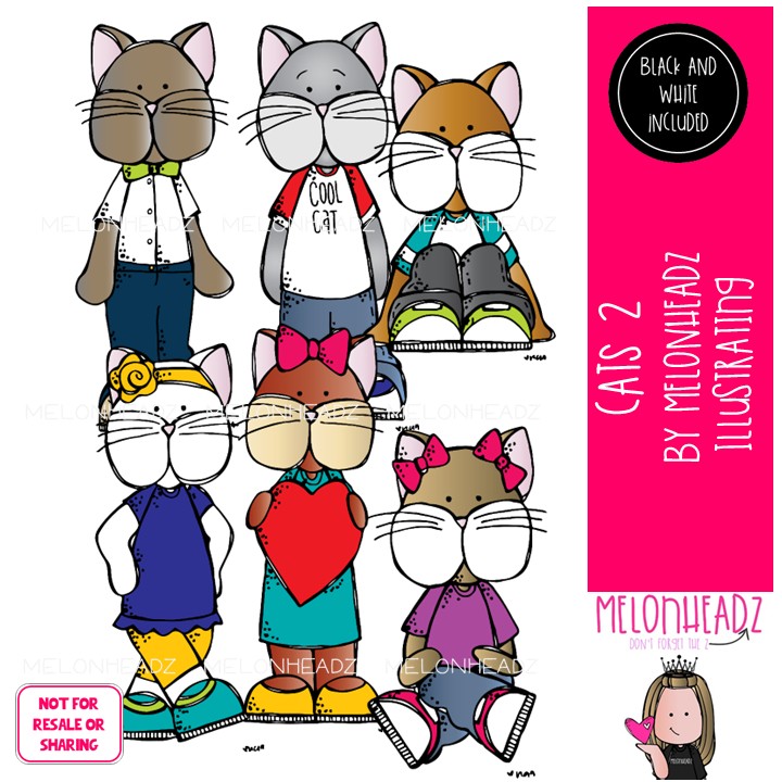 Cats 2 clip art, pets, animals Mini: This illustrated set contains all of the clip art images as shown in the preview picture. COLORED and BLACK AND WHITE illustrations included.