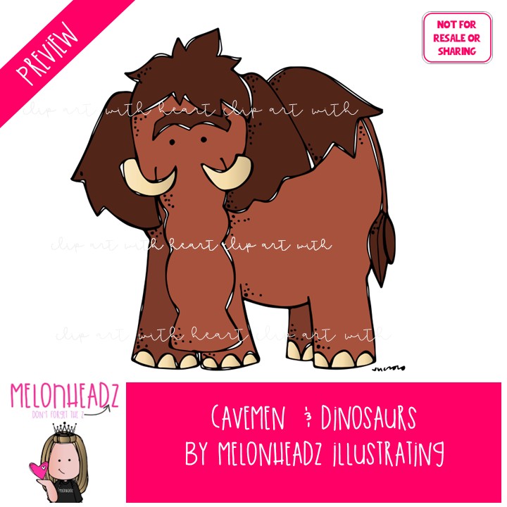 Cavemen and Dinosaur clip art, prehistoric, mastodon COLORED Version: This illustrated set contains all of the clip art images as shown in the preview picture. COLORED illustrations included.