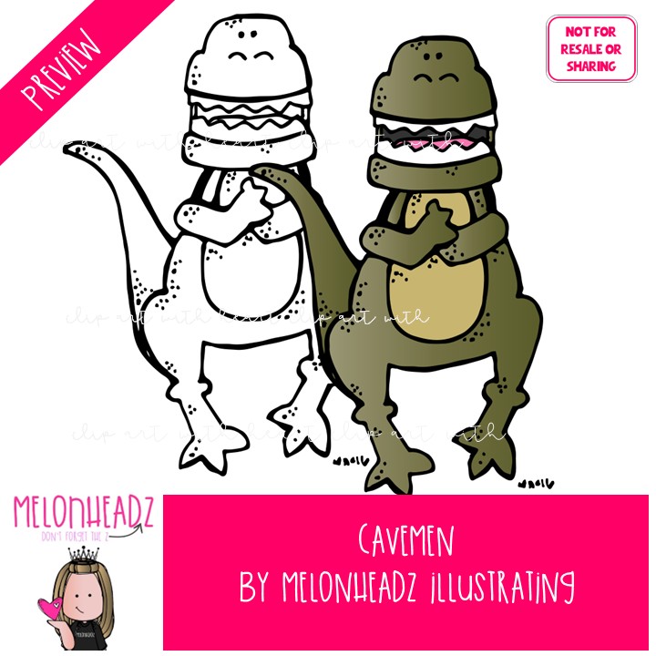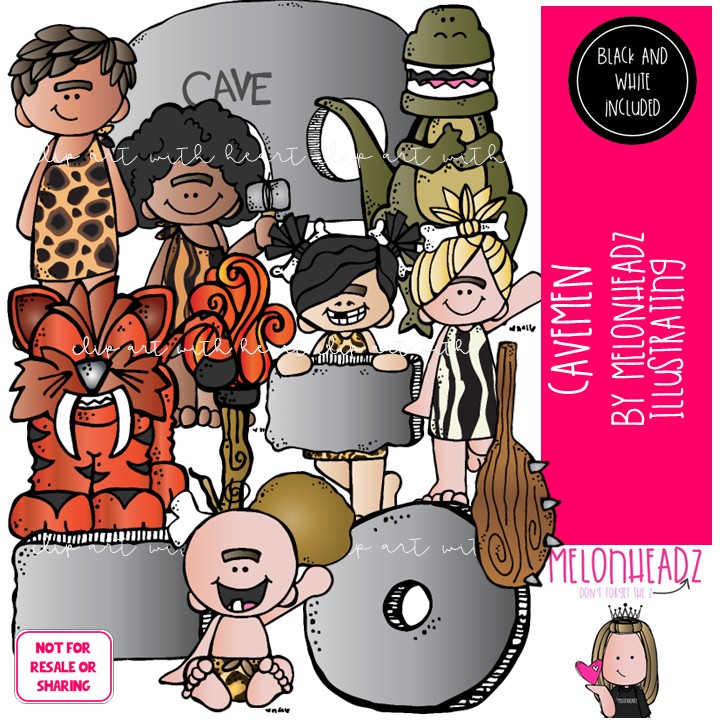 Cavemen clip art, prehistoric, dinosaur COMBO PACK: This illustrated set contains all of the clip art images as shown in the preview picture. COLORED and BLACK AND WHITE illustrations included.
