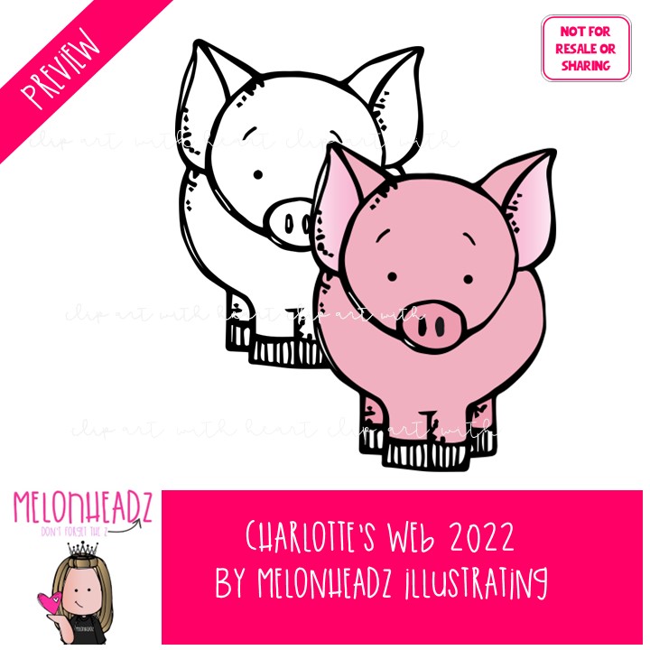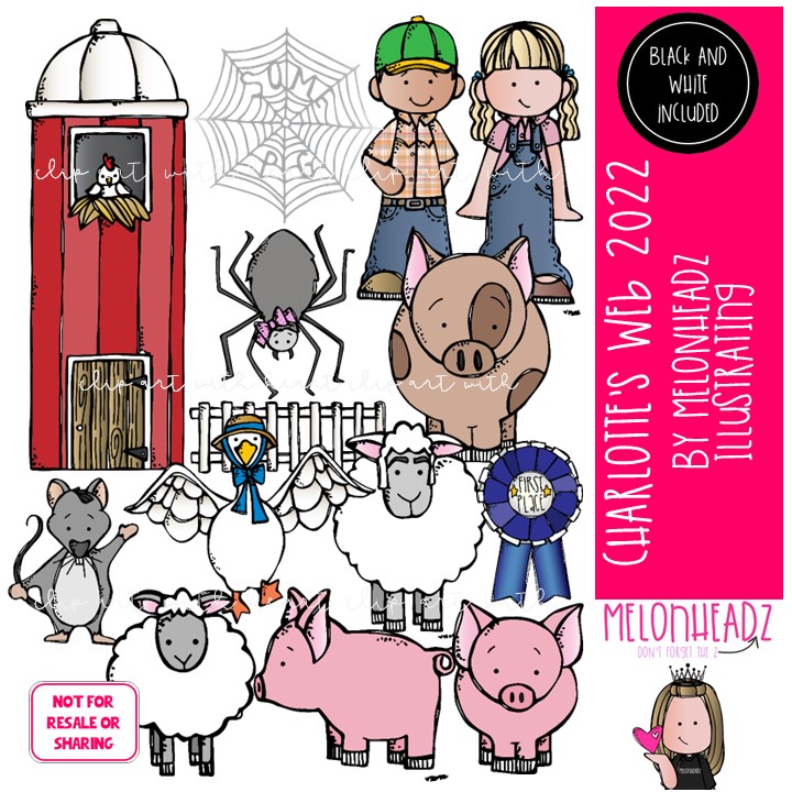Charlotte’s Web clip art 2022, book companion, literature COMBO PACK: This illustrated set contains all of the clip art images as shown in the preview picture. COLORED and BLACK AND WHITE illustrations included.