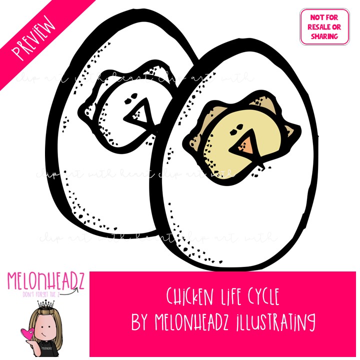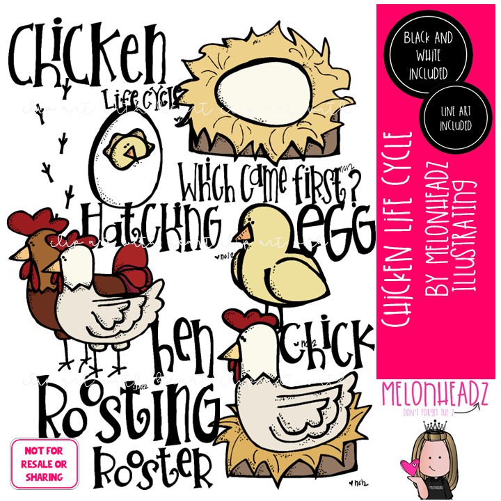 Chicken life cycle clip art, egg, sequence COMBO PACK: This illustrated set contains all of the clip art images as shown in the preview picture. COLORED, BLACK AND WHITE and LINE ART illustrations included.