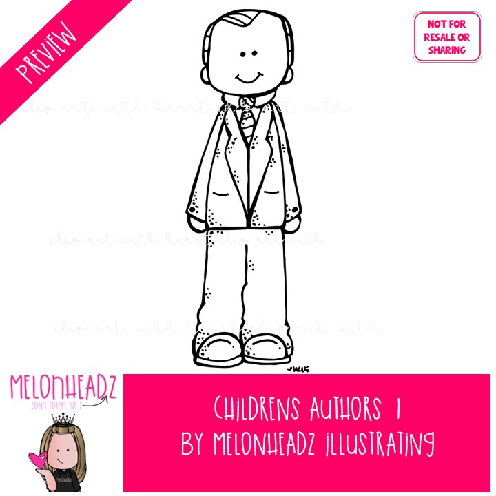 Children / Youth Author clip art 1, Historical Figure BLACK AND WHITE: This illustrated set contains all of the clip art images as shown in the preview picture. BLACK AND WHITE illustrations included.