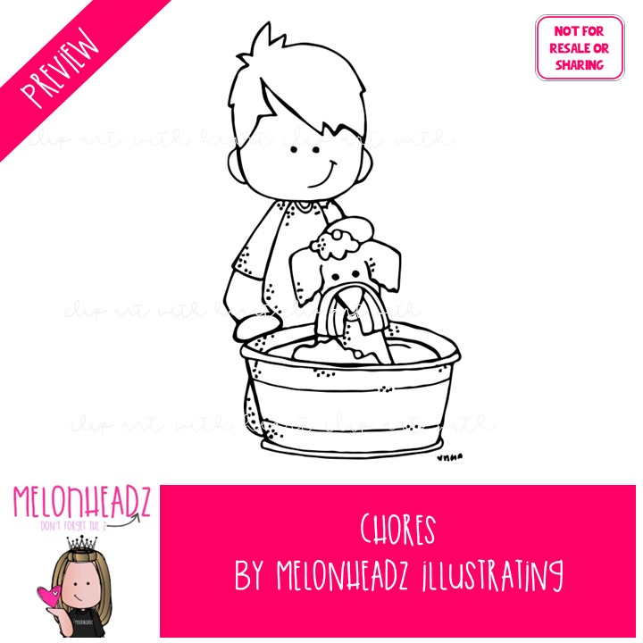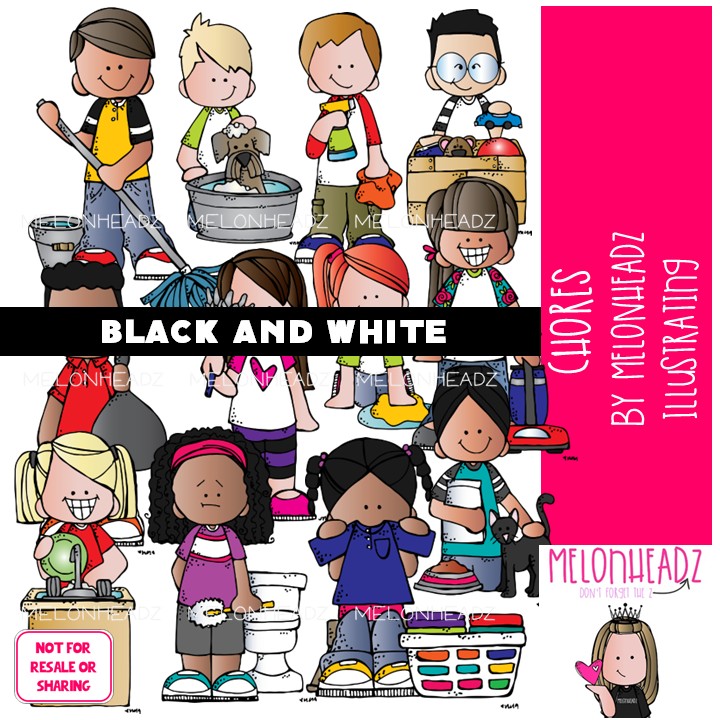 Chore clip art, task, housework BLACK AND WHITE: This illustrated set contains all of the clip art images as shown in the preview picture. BLACK AND WHITE illustrations included.