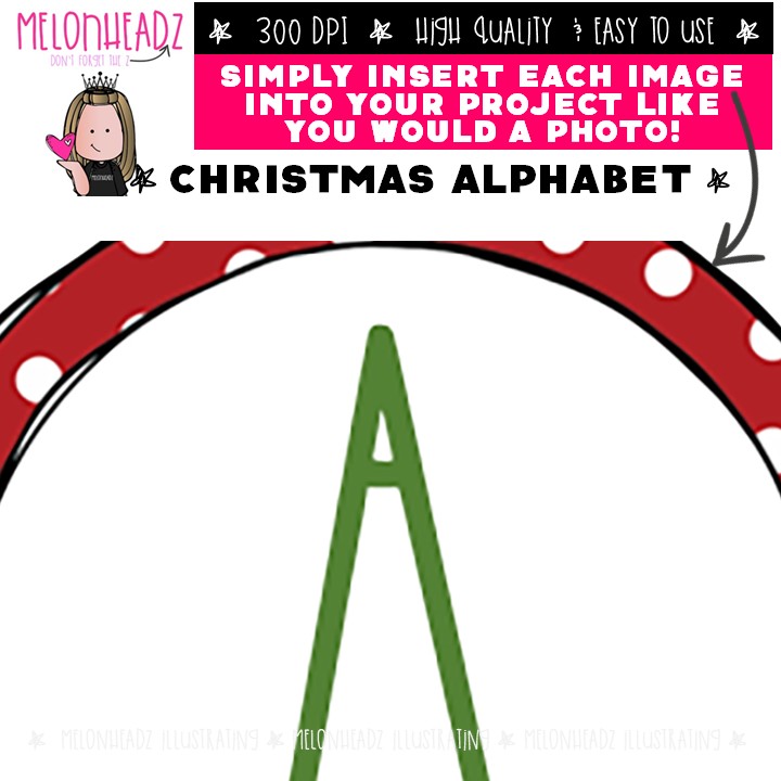 Christmas Alphabet clip art, Letters clip art COLORED Version: This illustrated set contains all of the clip art images as shown in the preview picture. COLORED illustrations included.