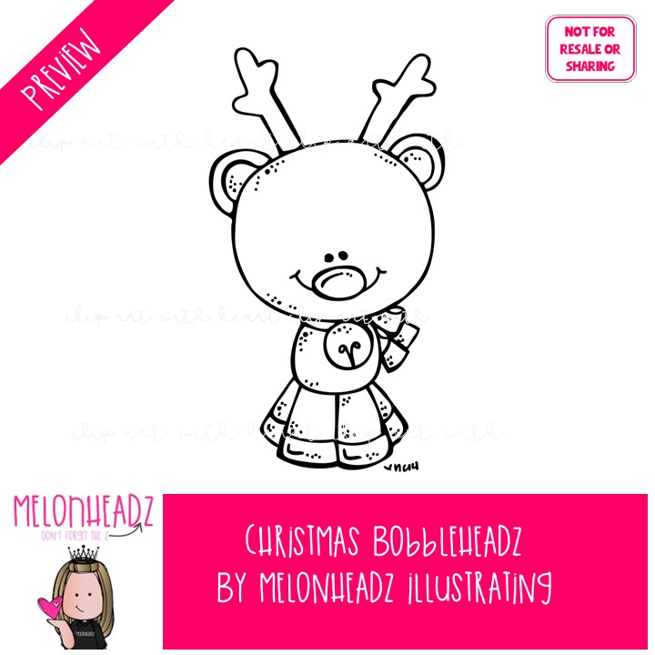 Christmas Bobbleheadz clip art, Santa clip art, elf clip art BLACK AND WHITE: This illustrated set contains all of the clip art images as shown in the preview picture. BLACK AND WHITE illustrations included.