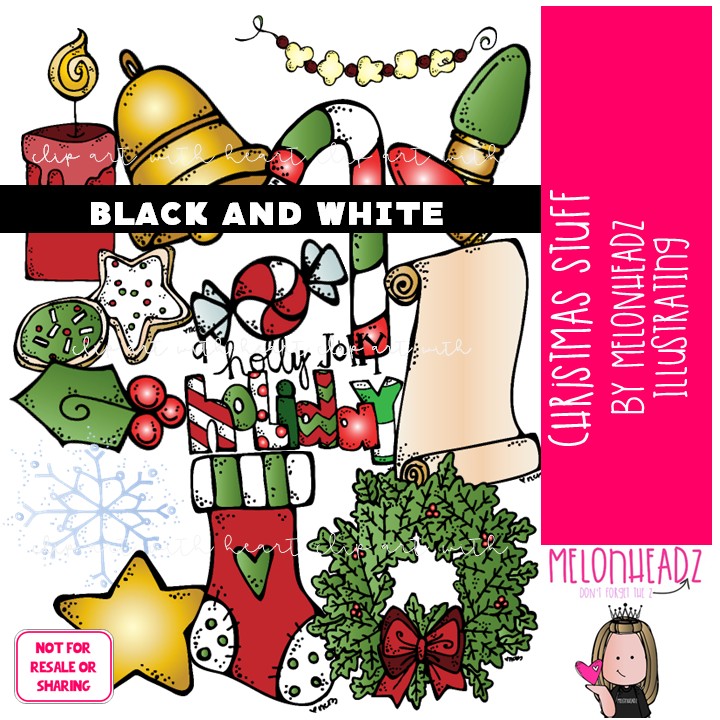 Christmas Stuff clip art, Christmas Cookie clip art BLACK AND WHITE: This illustrated set contains all of the clip art images as shown in the preview picture. BLACK AND WHITE illustrations included.