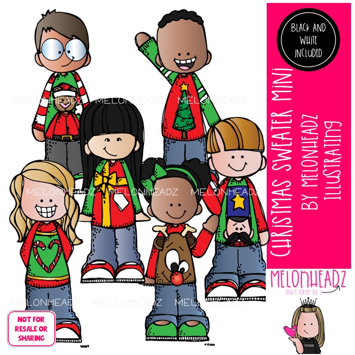 Christmas Sweater clip art Mini: This illustrated set contains all of the clip art images as shown in the preview picture. COLORED and BLACK AND WHITE illustrations included.
