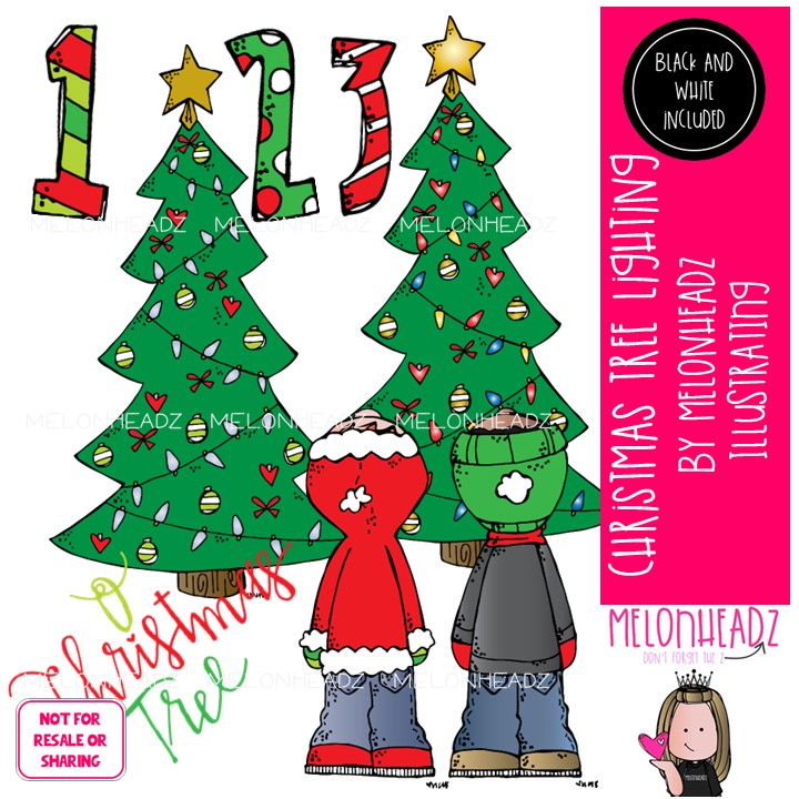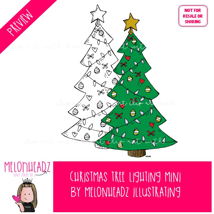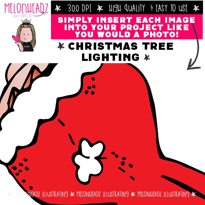 Christmas Tree lighting clip art Mini: This illustrated set contains all of the clip art images as shown in the preview picture. COLORED and BLACK AND WHITE illustrations included.