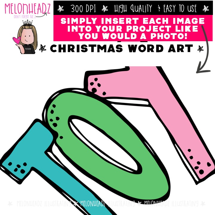 Christmas Word Art 2018 clip art, Phrase clip art COMBO PACK : This illustrated set contains all of the clip art images as shown in the preview picture. COLORED and BLACK AND WHITE illustrations included.