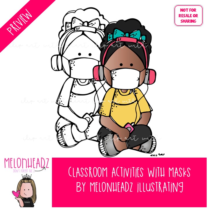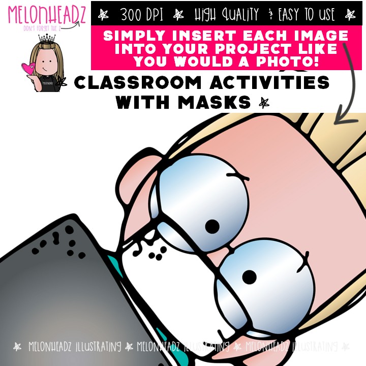 Classroom Activities clip art, masks, school COMBO PACK: This illustrated set contains all of the clip art images as shown in the preview picture. COLORED and BLACK AND WHITE illustrations included.