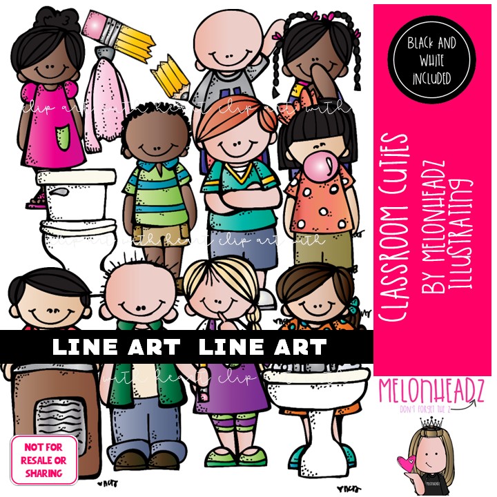 Classroom cuties clip art Class Jobs clip art Class Rules clip art LINE ART and BLACK AND WHITE: This illustrated set contains all of the clip art images as shown in the preview picture. LINE ART and BLACK AND WHITE illustrations included.
