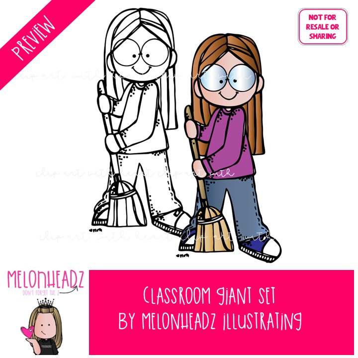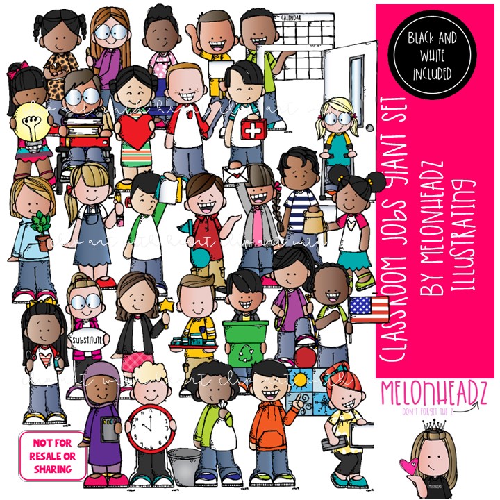 Classroom Jobs 1 clip art, school, kidlettes GIANT set: This illustrated set contains all of the clip art images as shown in the preview picture. COLORED and BLACK AND WHITE illustrations included.
