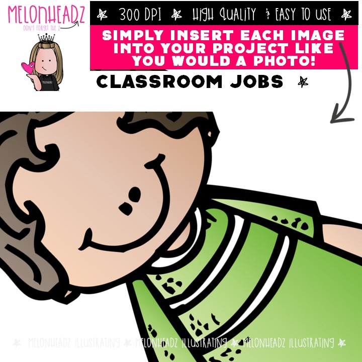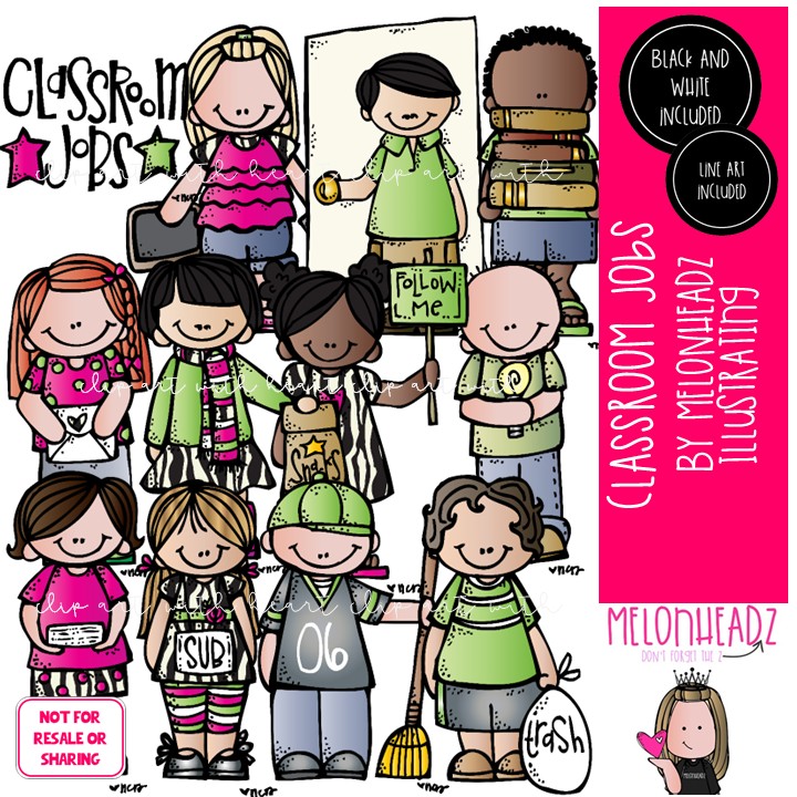 Classroom Jobs clip art, school, kidlettes COMBO PACK: This illustrated set contains all of the clip art images as shown in the preview picture. COLORED, BLACK AND WHITE and LINE ART illustrations included.