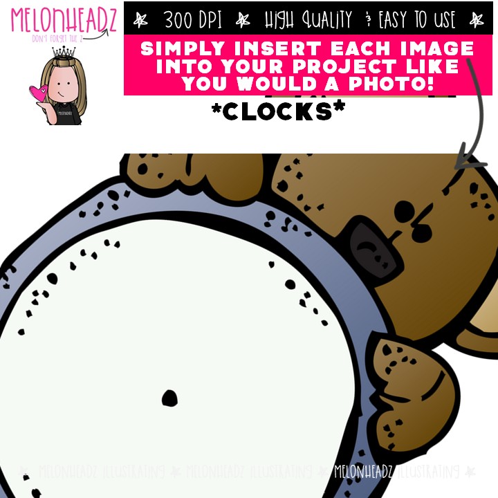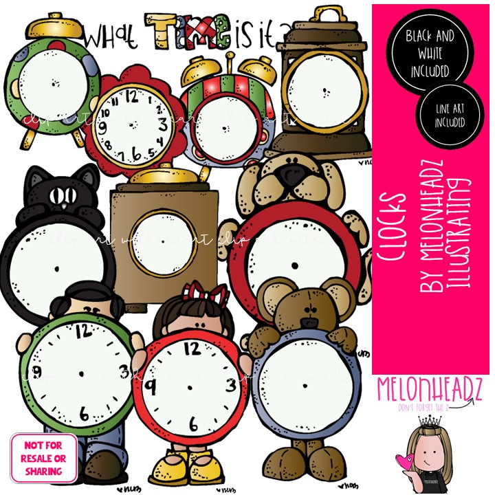 Clocks clip art, blank, time COMBO PACK: This illustrated set contains all of the clip art images as shown in the preview picture. COLORED, BLACK AND WHITE and LINE ART illustrations included.