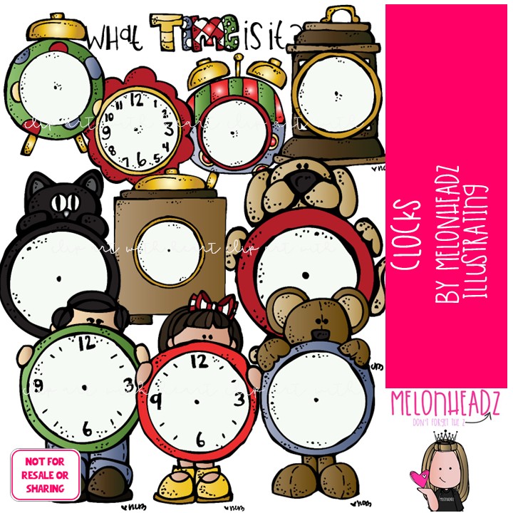 Clocks clip art, blank, time COLORED Version: This illustrated set contains all of the clip art images as shown in the preview picture. COLORED illustrations included.
