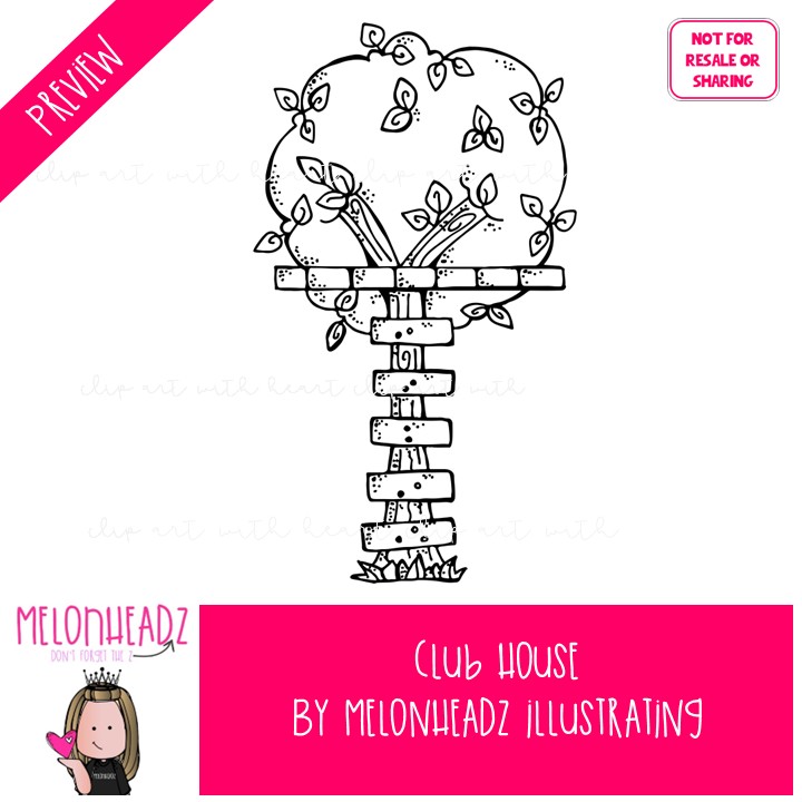 Clubhouse clip art, treehouse, club BLACK AND WHITE: This illustrated set contains all of the clip art images as shown in the preview picture. BLACK AND WHITE illustrations included.