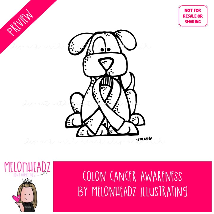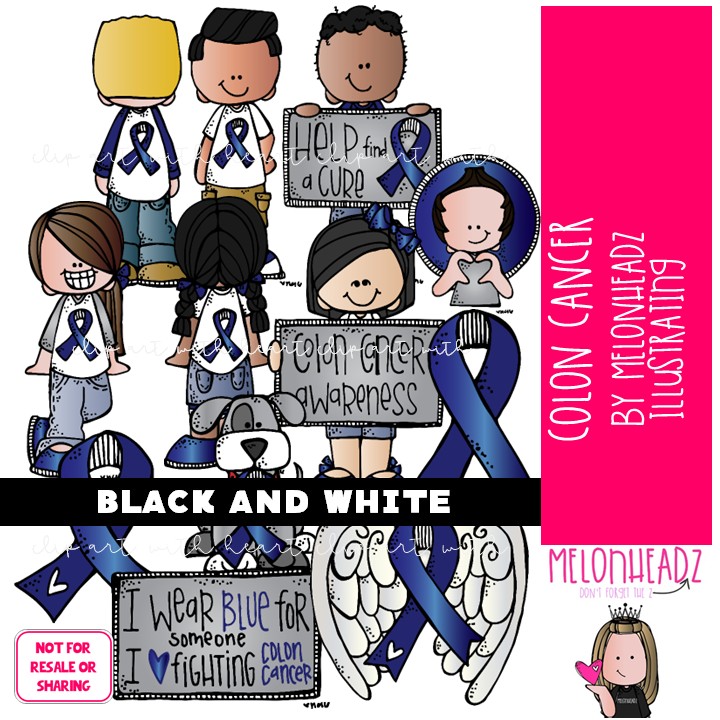 Colon Cancer clip art, awareness, ribbon BLACK AND WHITE: This illustrated set contains all of the clip art images as shown in the preview picture. BLACK AND WHITE illustrations included.