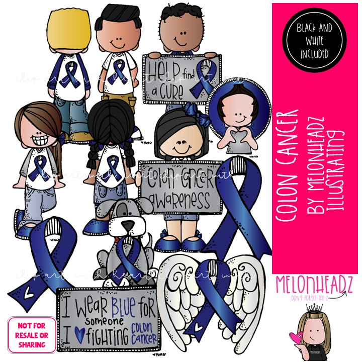 Colon Cancer clip art, Awareness, ribbon COMBO PACK: This illustrated set contains all of the clip art images as shown in the preview picture. COLORED and BLACK AND WHITE illustrations included.