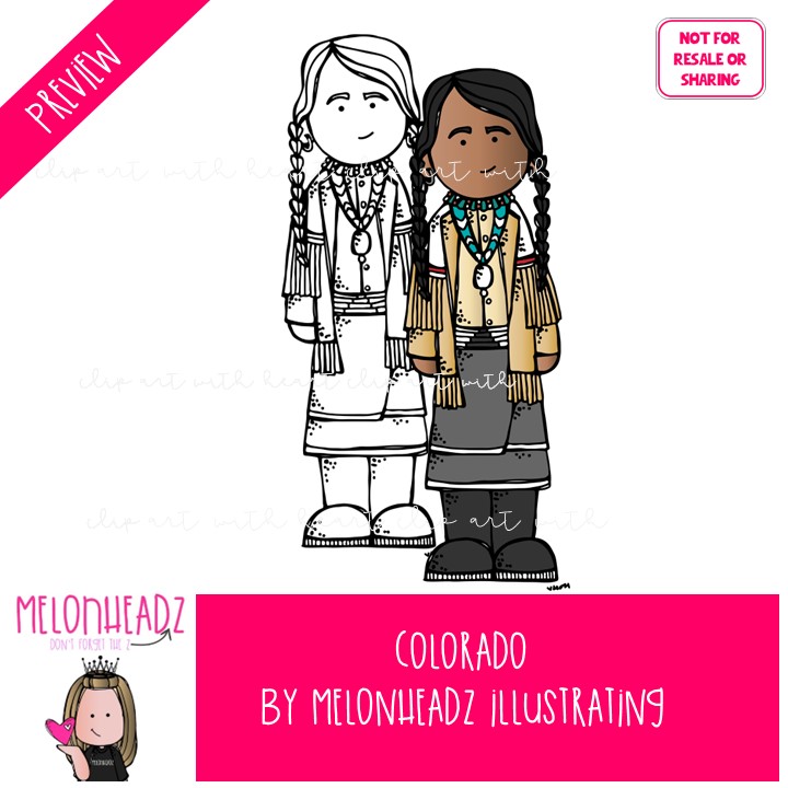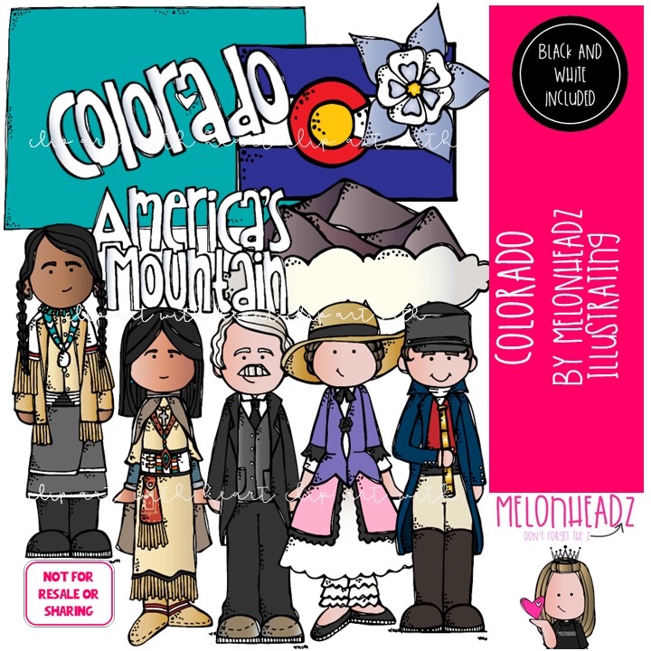 Colorado clip art, state, historical figure COMBO PACK: This illustrated set contains all of the clip art images as shown in the preview picture. COLORED and BLACK AND WHITE illustrations included.