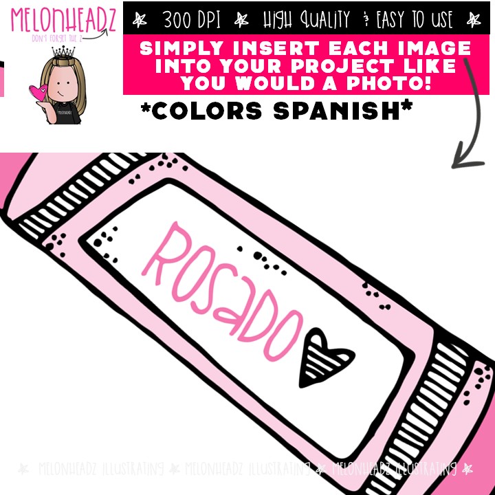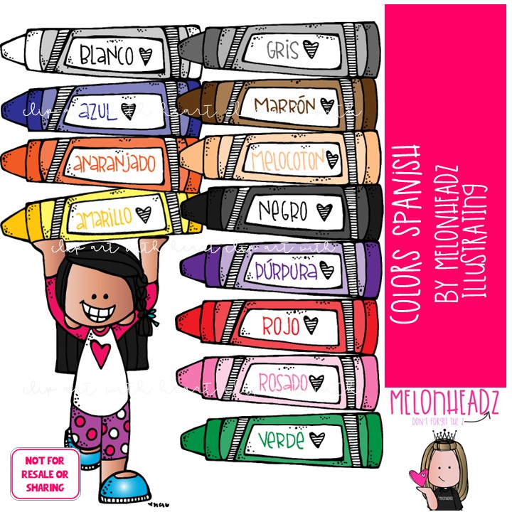 Colors, Spanish, crayon COLORED Version: This illustrated set contains all of the clip art images as shown in the preview picture. COLORED illustrations included.