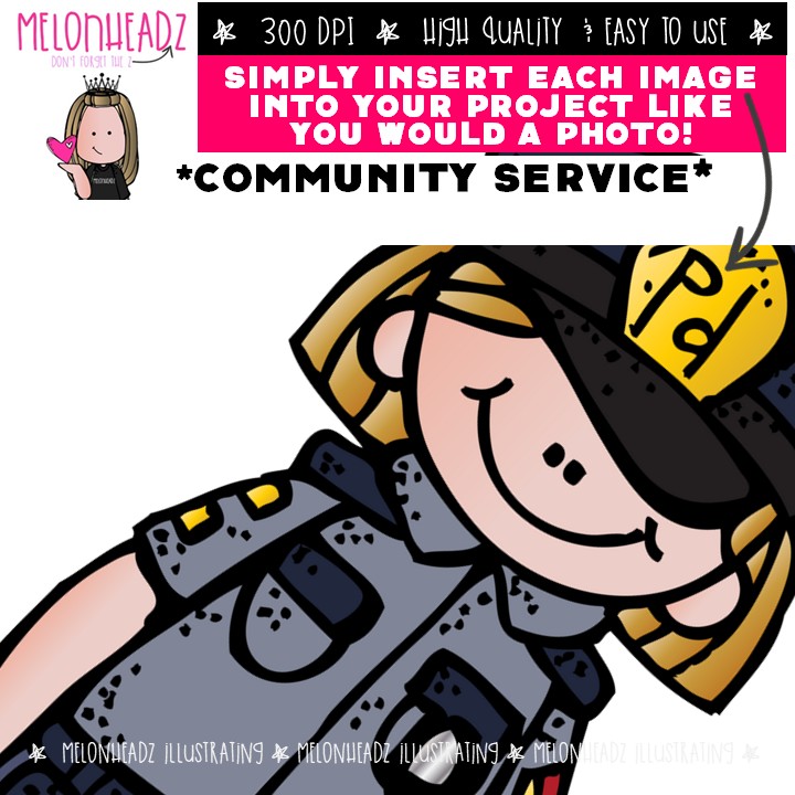 Community Service clip art, career, worker COLORED Version: This illustrated set contains all of the clip art images as shown in the preview picture. COLORED illustrations included.