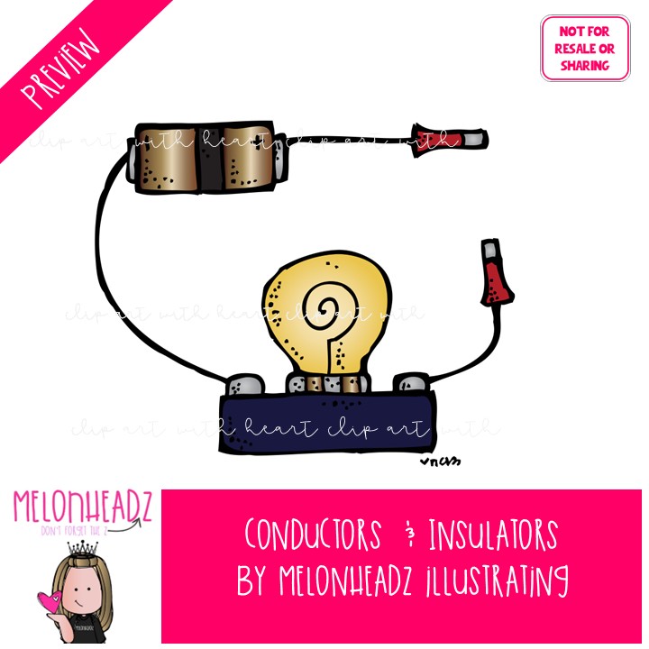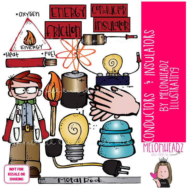 Conductors and Insulators clip art, science, experiment COLORED Version: This illustrated set contains all of the clip art images as shown in the preview picture. COLORED illustrations included.