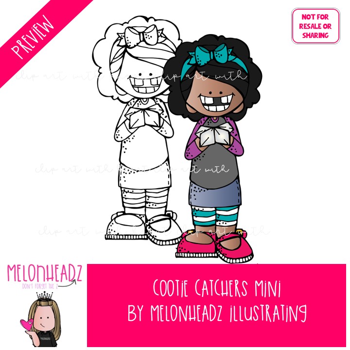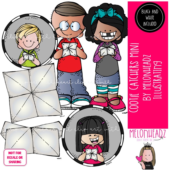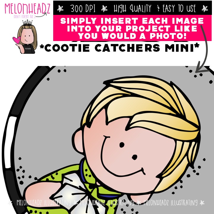 Cootie Catchers clip art, fortune teller, play Mini: This illustrated set contains all of the clip art images as shown in the preview picture. COLORED and BLACK AND WHITE illustrations included.