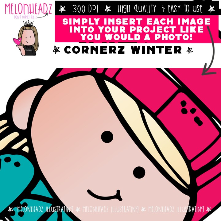 Cornerz clip art, Winter clip art Mini: This illustrated set contains all of the clip art images as shown in the preview picture. COLORED and BLACK AND WHITE illustrations included.