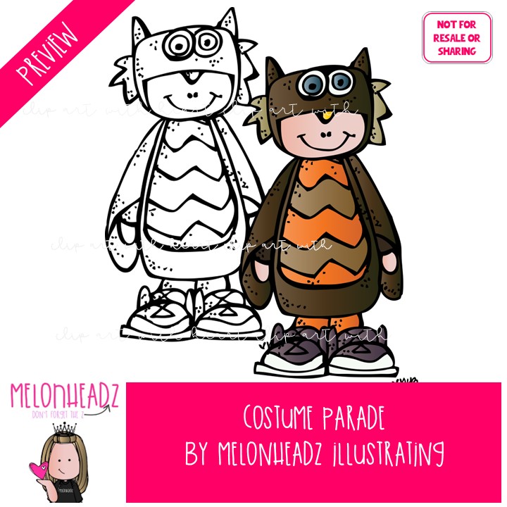 Costume Parade clip art, Halloween, school COMBO PACK: This illustrated set contains all of the clip art images as shown in the preview picture. COLORED, BLACK AND WHITE and LINE ART illustrations included.