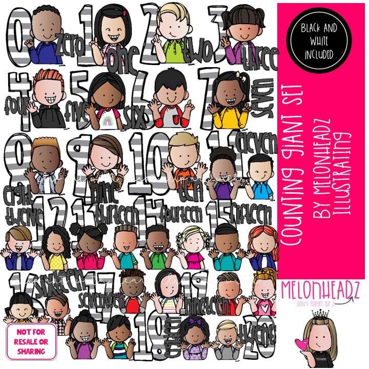 Counting clip art, math, numbers, kidlettes COMBO PACK: This illustrated set contains all of the clip art images as shown in the preview picture. COLORED and BLACK AND WHITE illustrations included.