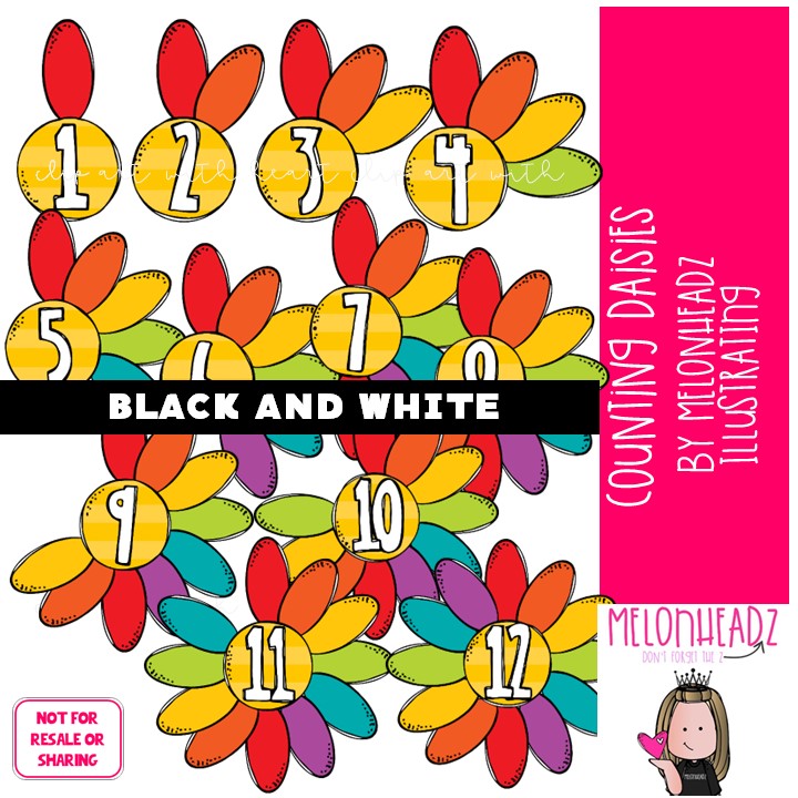 Counting Daisies clip art, math, number BLACK AND WHITE: This illustrated set contains all of the clip art images as shown in the preview picture. BLACK AND WHITE illustrations included.