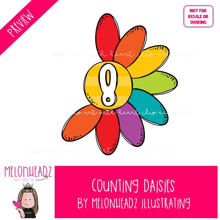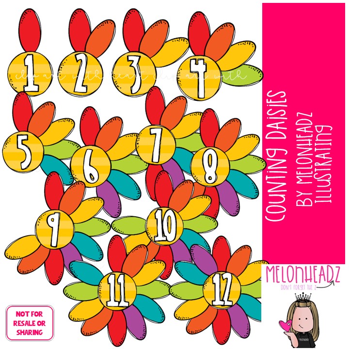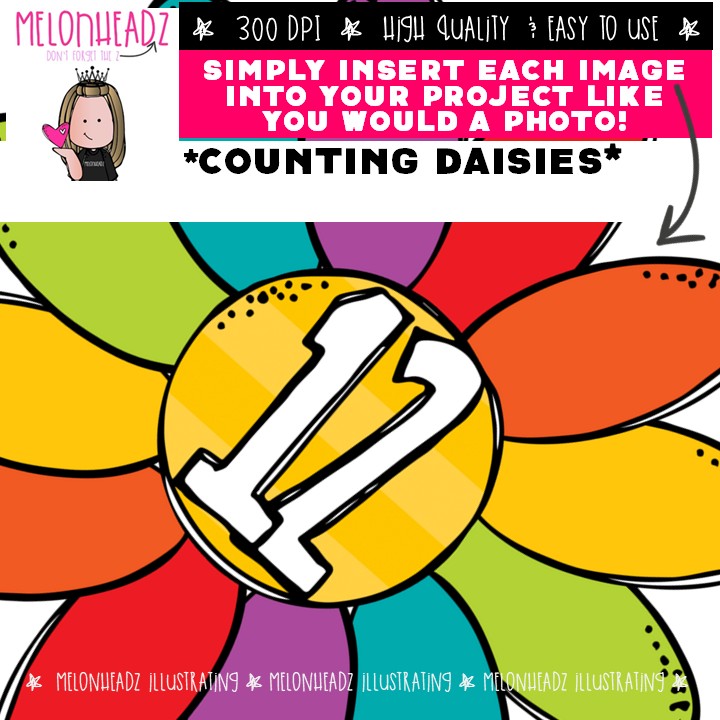 Counting Daisies clip art, math, numbers COLORED Version: This illustrated set contains all of the clip art images as shown in the preview picture. COLORED illustrations included.