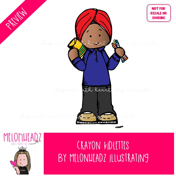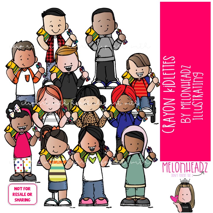 Crayon kidlettes clip art, multiracial, art COLORED Version: This illustrated set contains all of the clip art images as shown in the preview picture. COLORED illustrationsincluded.