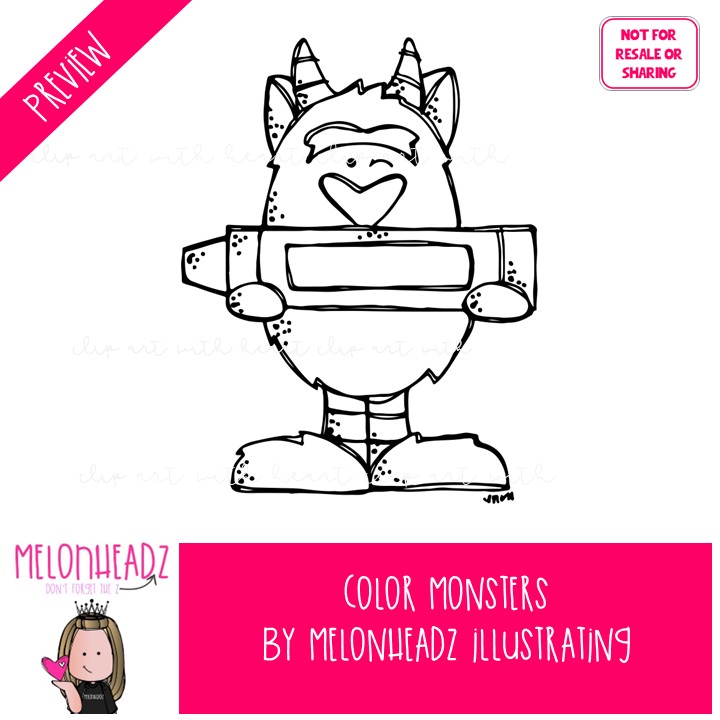 Crayon Monsters clip art, colors, teach BLACK AND WHITE: This illustrated set contains all of the clip art images as shown in the preview picture. BLACK AND WHITE illustrations included.