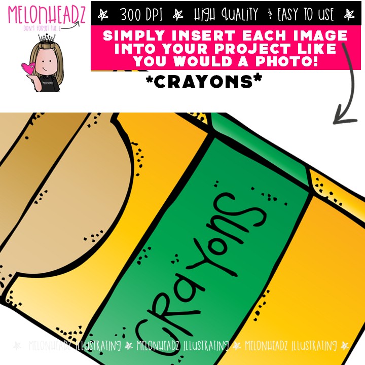 Crayons clip art, school supplies, bright COMBO PACK: This illustrated set contains all of the clip art images as shown in the preview picture. COLORED illustrations included.