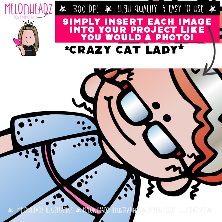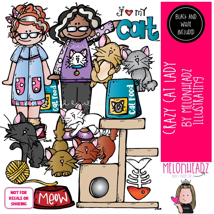 CREATE YOUR OWN projects with this CAT LADY clip art set!