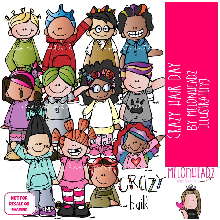 Crazy Hair Day clip art, School Spirit, Celebration COLORED Version: This illustrated set contains all of the clip art images as shown in the preview picture. COLORED illustrations included.