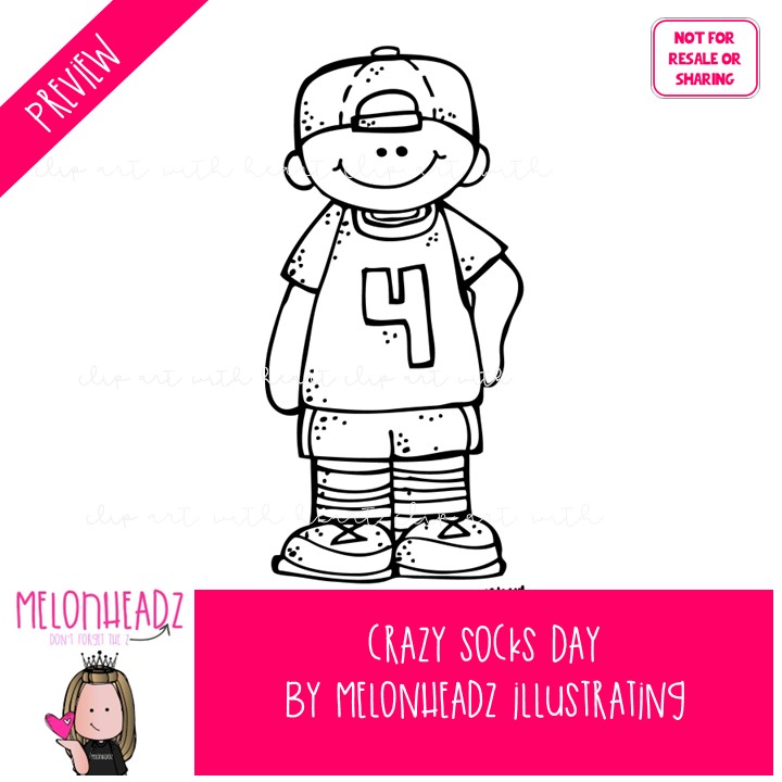 Crazy Socks clip art, School Spirit, celebration BLACK AND WHITE: This illustrated set contains all of the clip art images as shown in the preview picture. BLACK AND WHITE illustrations included.