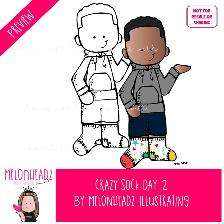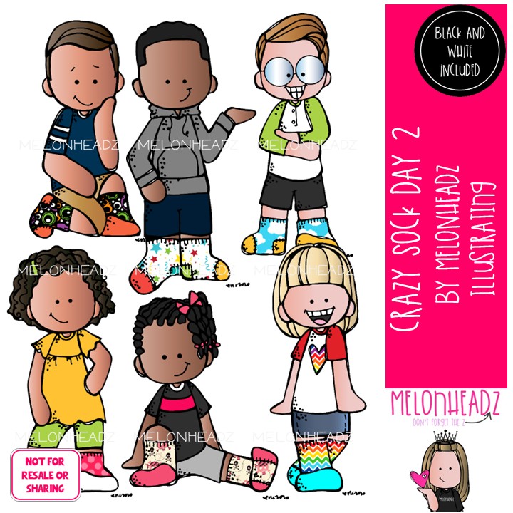 Crazy Socks Day clip art set 2, School Spirit clip art Mini: This illustrated set contains all of the clip art images as shown in the preview picture. COLORED and BLACK AND WHITE illustrations included.