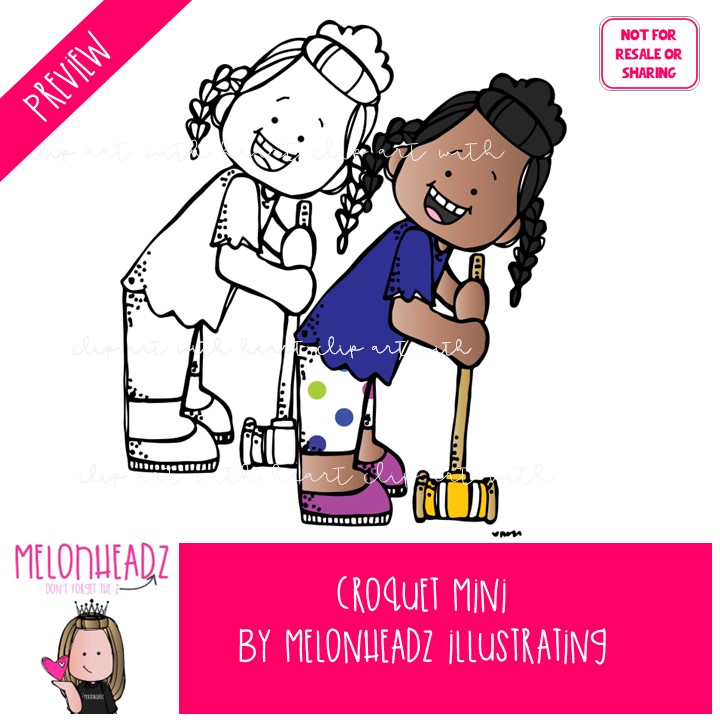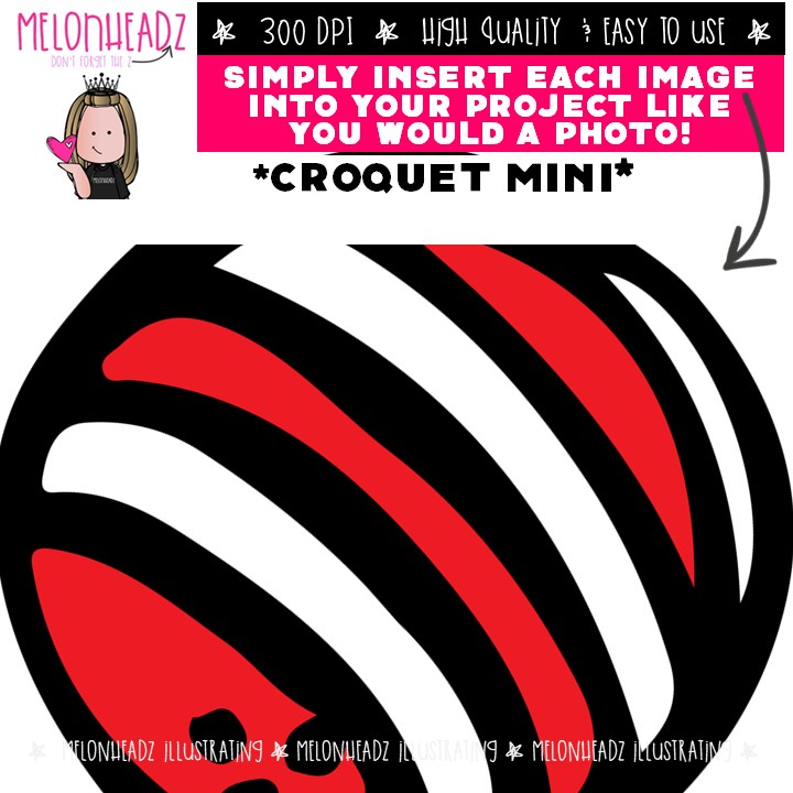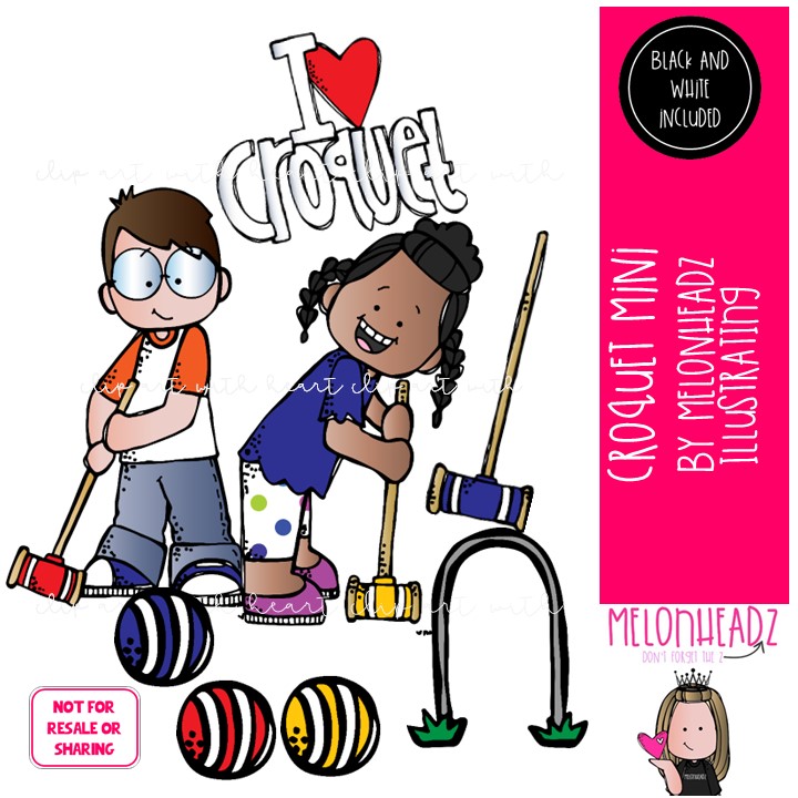 Croquet clip art, game, play Mini: This illustrated set contains all of the clip art images as shown in the preview picture. COLORED and BLACK AND WHITE illustrations included.