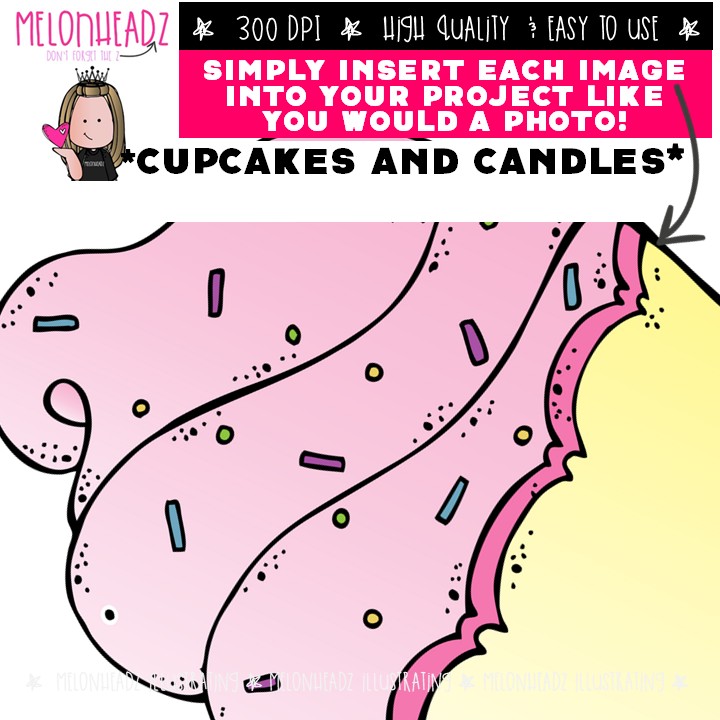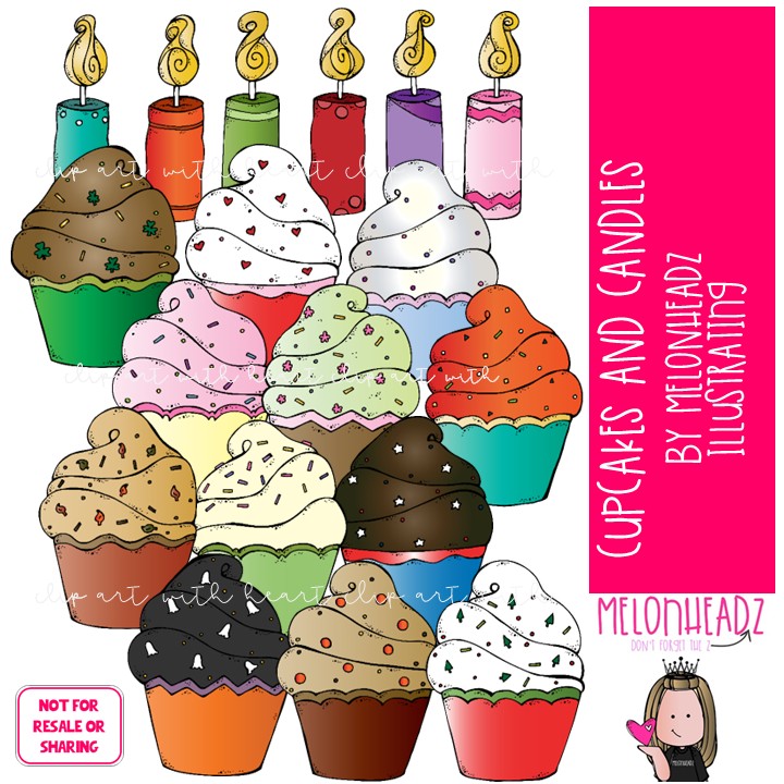 Cupcakes and Candles clip art, birthday, dessert COLORED Version: This illustrated set contains all of the clip art images as shown in the preview picture. COLORED illustrations included.