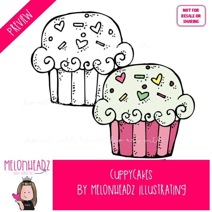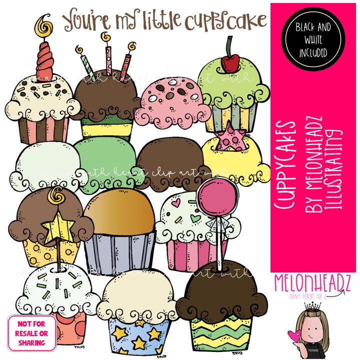 Cuppycakes clip art, cupcake, dessert COMBO PACK: This illustrated set contains all of the clip art images as shown in the preview picture. COLORED and BLACK AND WHITE illustrations included.