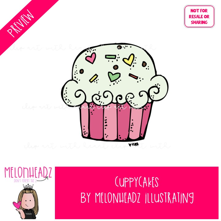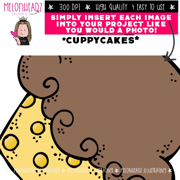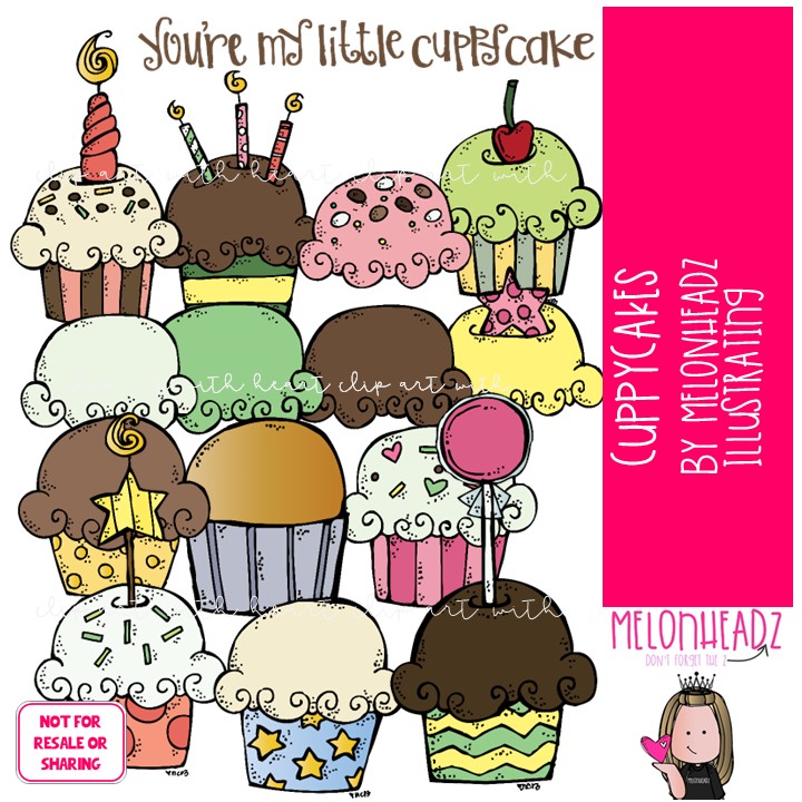 Cuppycake clip art, cupcake, dessert COLORED Version: This illustrated set contains all of the clip art images as shown in the preview picture. COLORED illustrations included.